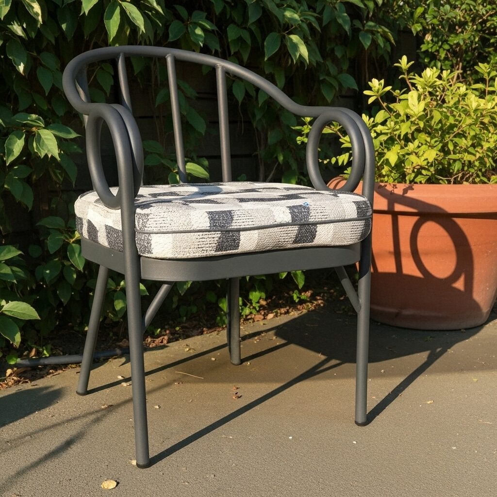 Designed with a sleek grey frame and tightly wrapped rope detailing, this chair blends durability with modern elegance. The seat cushion provides softness while maintaining a clean, structured look. Perfect for dining areas, patios, and balcony setups.